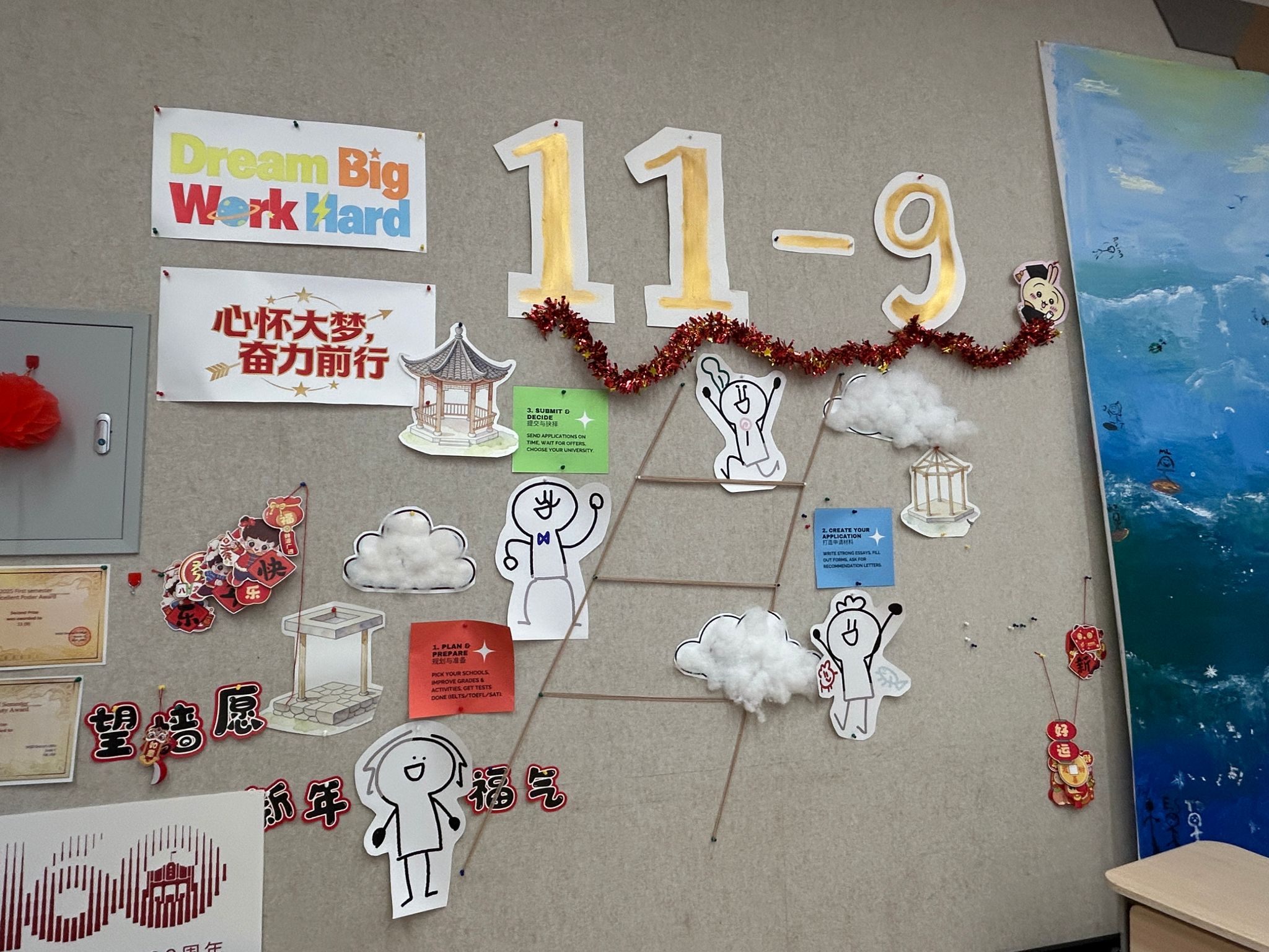 新学期十一年级各个班级以“心怀大梦,奋力前行”为主题打造了独一无二的班级板报。各个班级布置各具特色,充满朝气,表现出同学们寒假归来后准备开启新旅程的劲头。