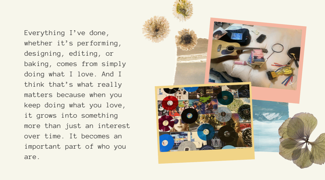 晨会的最后,来自9(12)班的Amy同学登台分享了她坚持热爱的成长故事。她坦言,自小对镜头前的表演充满向往,既享受舞台上的绽放时刻,也热衷幕后的创意制作。凭借这份源源不断的创造力,她在媒体社、数学戏剧等多项校园活动中贡献了自己的力量,展现了热爱如何驱动成长、点亮青春。