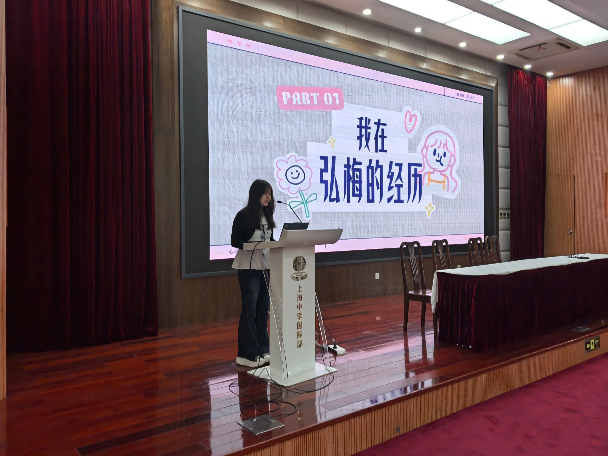 3月27日早晨,国际部十二年级学生如期在先棉堂辅楼礼堂举行集体晨会。来自12年级7班的黄同学受邀分享了她参与上中国际与弘梅小学共同搭建的公益教辅活动的心得。