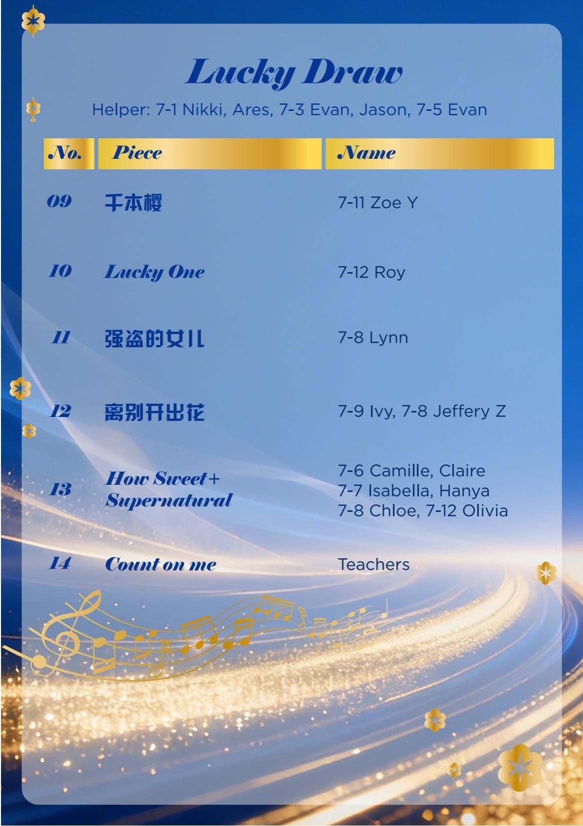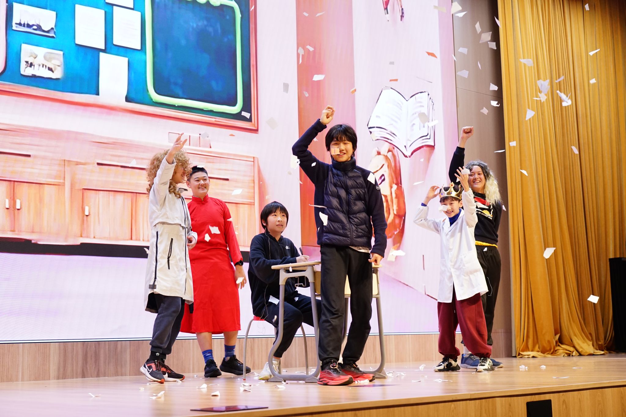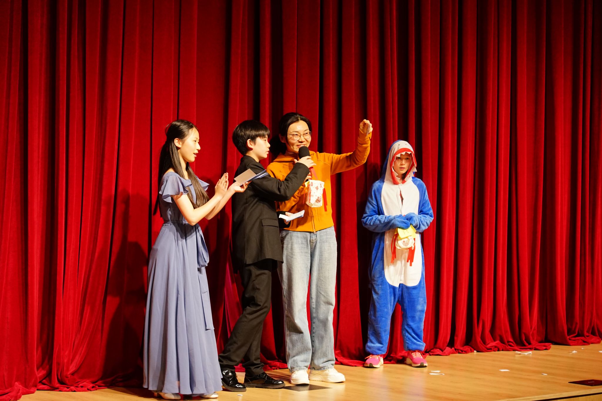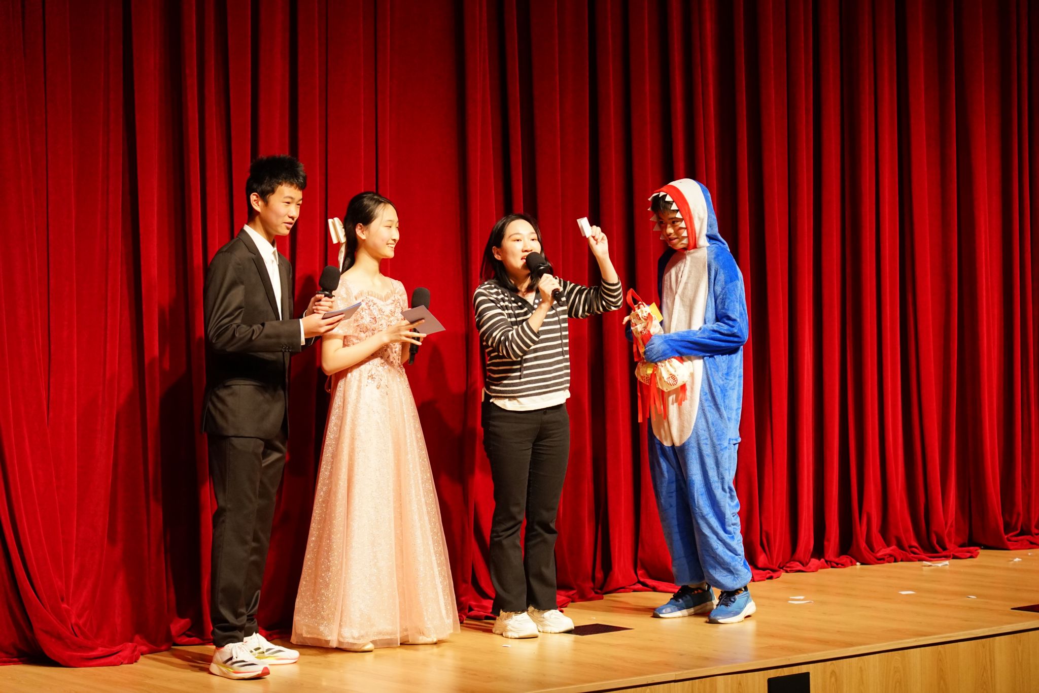 在精彩的节目之余,现场还穿插了轻松有趣的抽奖互动环节。Nikki, Ares, Evan J, Vito, Evan C为抽奖环节带来了暖场舞蹈《Baby Shark》,现场气氛热烈。每个班级的班主任依次上台抽选出了自己班级的幸运同学,最后由七年级组长吴文意老师和七年级副组长Mr. Wendell抽选出四个幸运班级送去奖品。