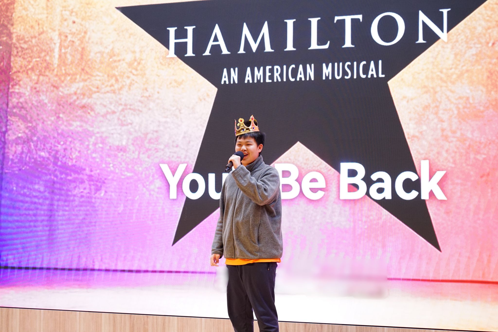 独唱节目同样精彩纷呈。Angela与Zoe合作演唱《不过是想》《几分之几》,以清新自然的嗓音诠释青春心绪,展现出良好的舞台表现力。Evan演唱的音乐剧选《You’ll Be Back》风格鲜明、表现力十足,使观众席发出阵阵掌声与笑声。