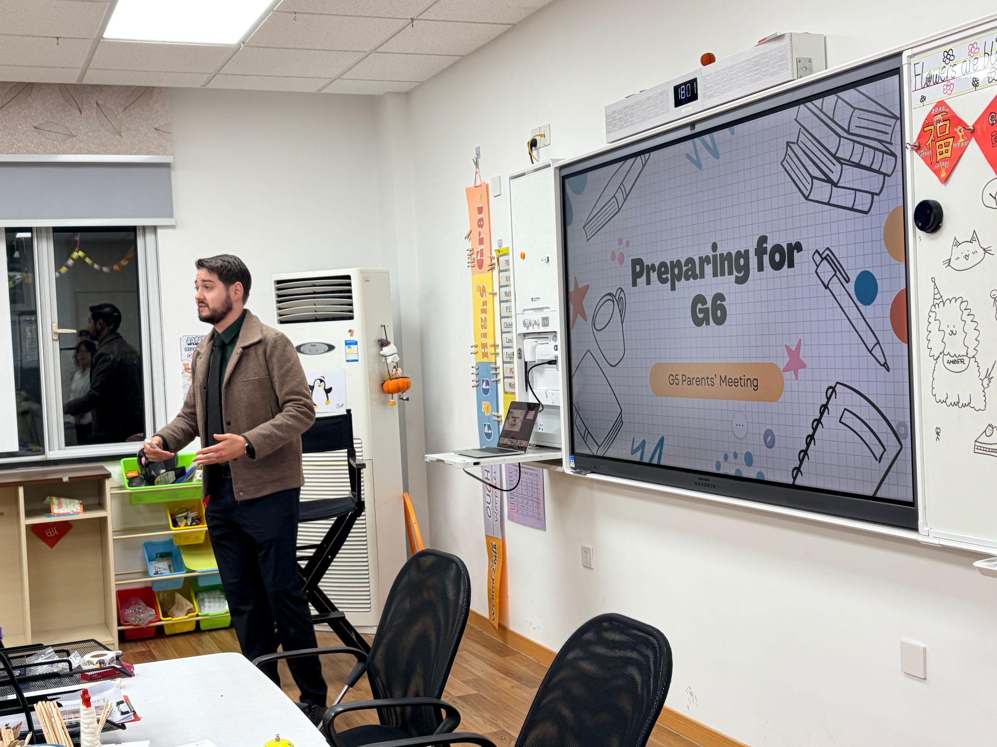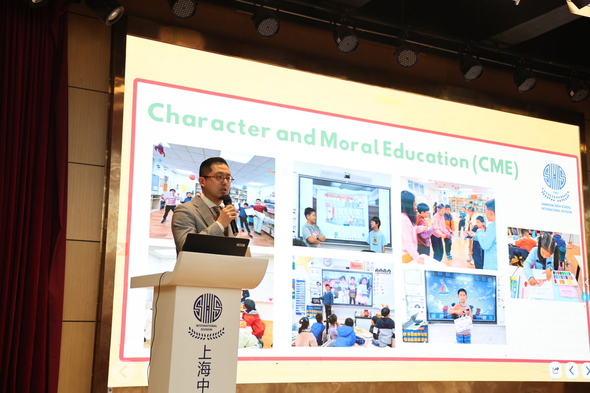 会议伊始,吴晓冬老师结合家长会问卷中的集中提问,分享了学校近期整体工作规划,为家校共育明确核心方向。吴老师指出,培养负责任的世界公民是学校初小阶段的核心育人目标之一,而体系日趋完善的CME课程是实现该目标的核心路径。学校通过每月设定CME主题词、配套告家长信及家庭小任务,推动家校同频落实品格教育,助力学生实现知行合一。针对家长关注的AI教学融合问题,学校秉持开放且谨慎的态度,严守“赋能课堂成效、培养学生驾驭技术能力”两大原则,让AI切实服务教学、赋能学生能力提升。此外,吴主任倡议家长结合孩子兴趣规划体育锻炼,学校也将搭建体育特长展示平台,在强健学生体魄的同时,培养其时间管理能力与志趣爱好。学校期望,上中国际的孩子能成为学术领跑的独立学习者、驾驭技术的智慧探索者,更能成为体魄强健、心怀善意的全球公民。