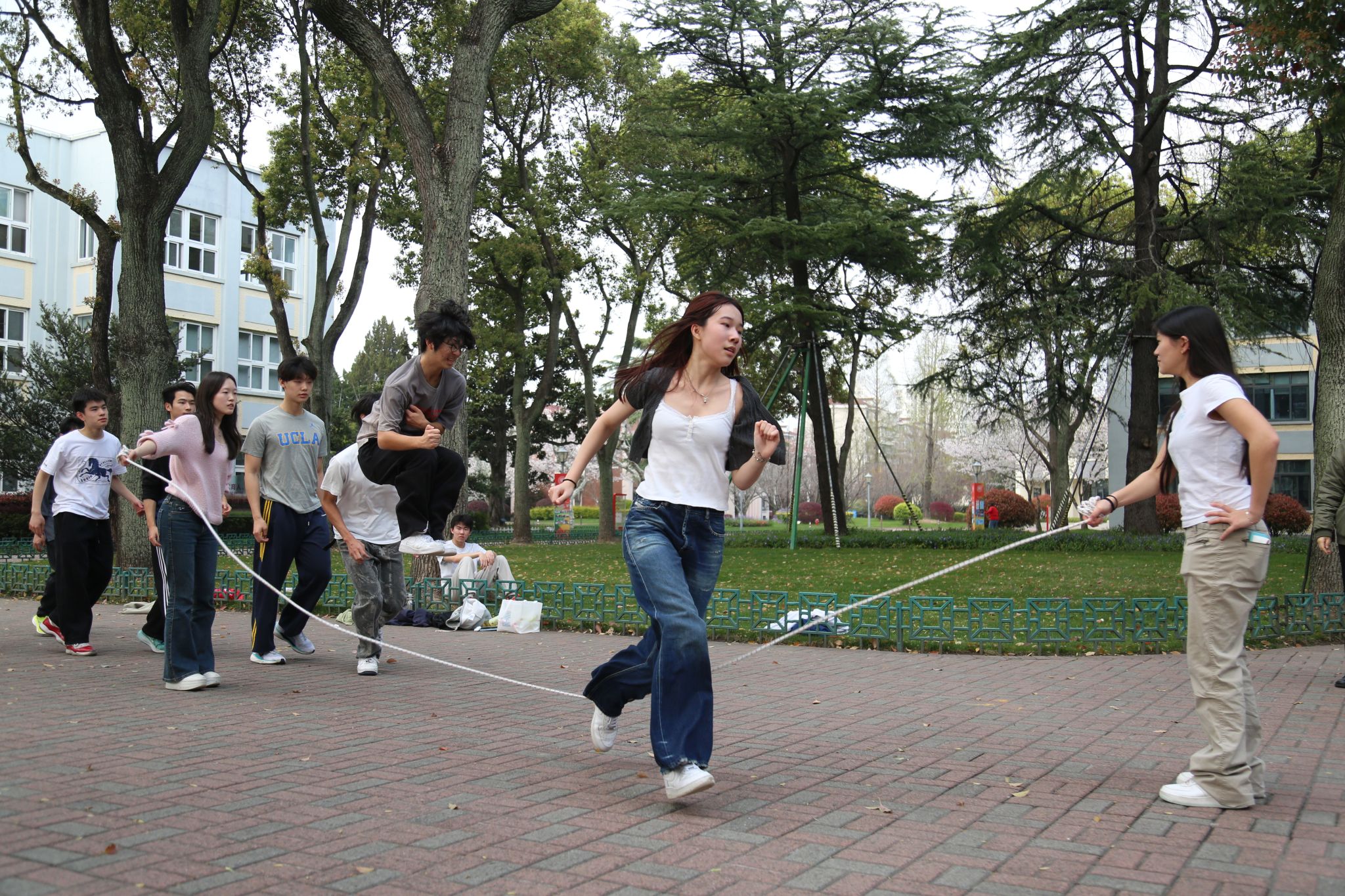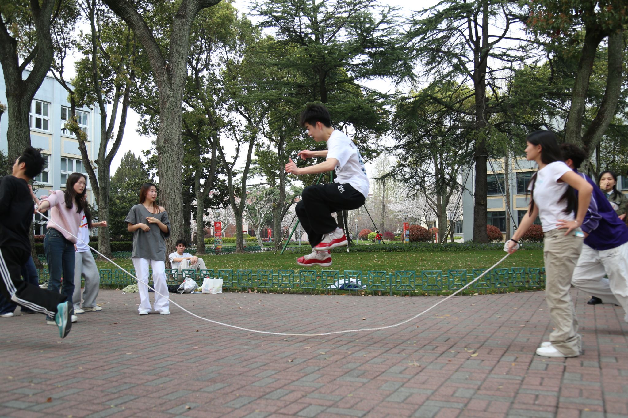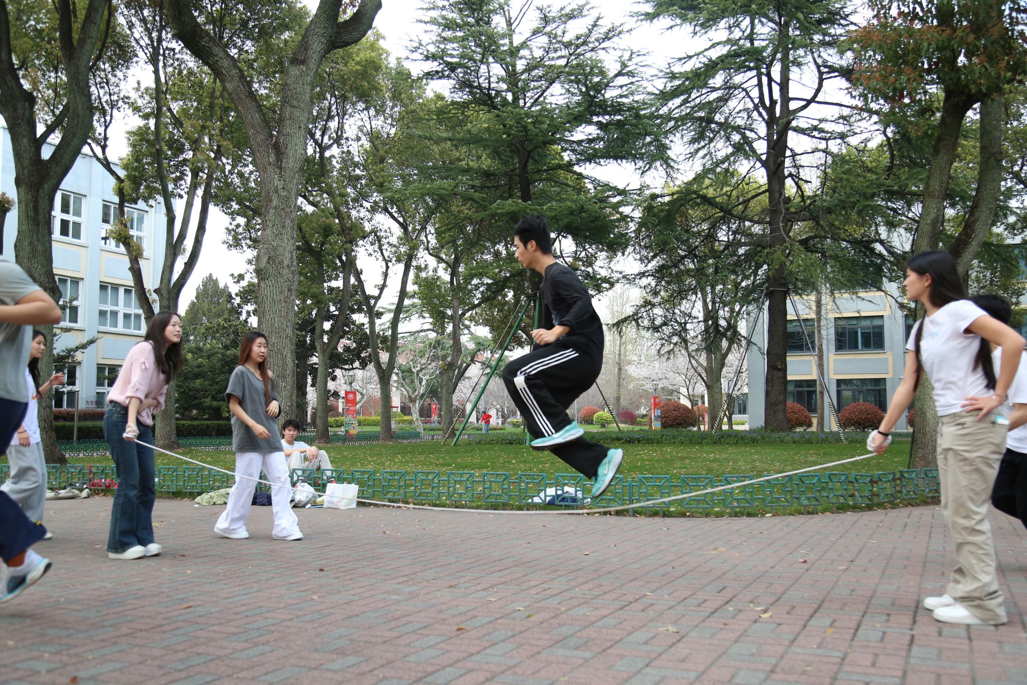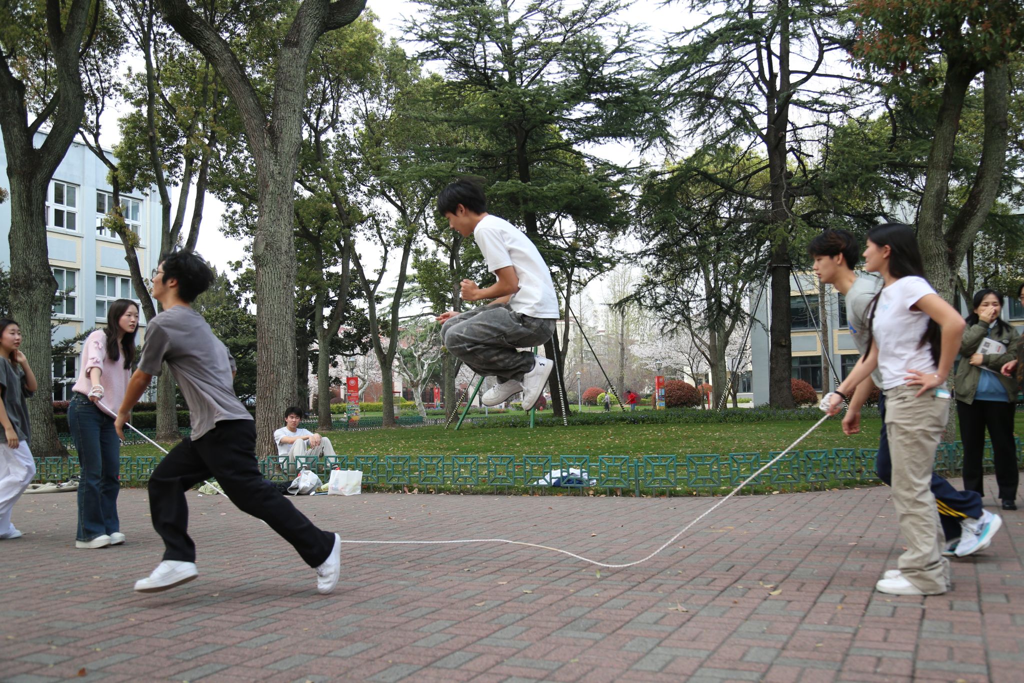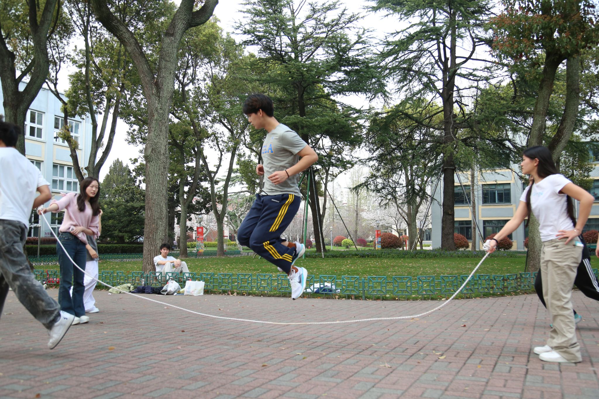 3月末的初春里,十一年级的同学们掀起了一股跳绳热潮。各班同学纷纷投入到热火朝天的跳绳训练中,班级之间既展开了激烈角逐,也洋溢着友好的比试氛围。