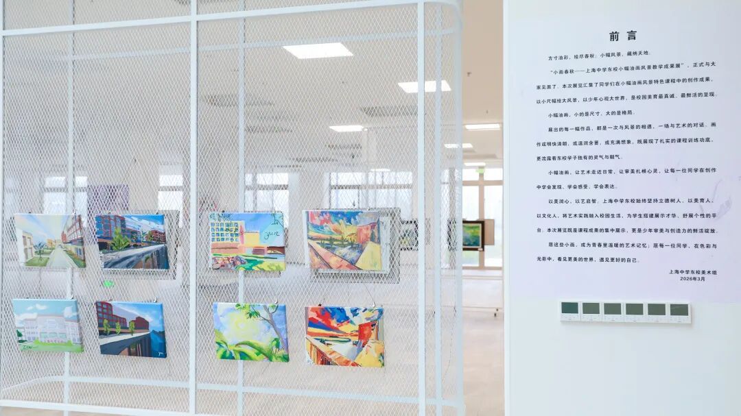 春日的校园,不仅有花香,还有油彩的芬芳。近日,上海中学东校「小画春秋——小幅油画风景教学成果展」精彩开幕,本次活动由上海市浦东教育发展研究院临港分院指导,第五期上海市“双名工程”钱雪锋艺术·美术攻关计划团队、浦东新区沈学文中学美术学科工作坊、浦东新区瞿剑宛临港美育攻关团队联合主办。