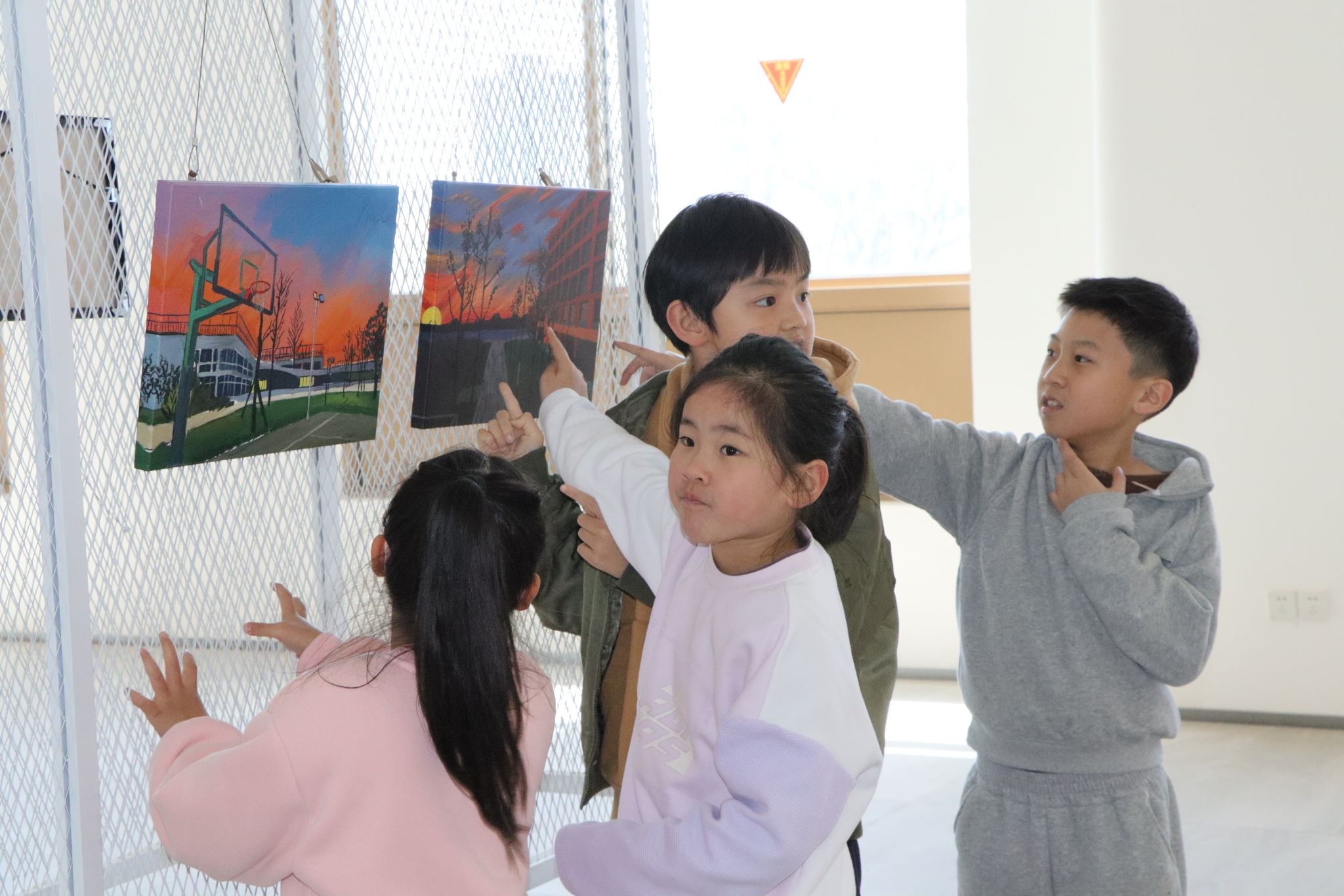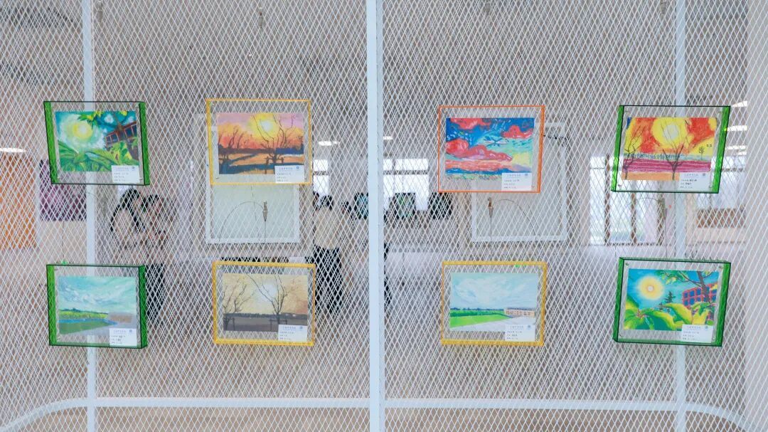 东校展览的前言写道:“小面春秋,除尽春秋:小幅风景,藏情天地。”——小的是尺寸,大的是格局。虽然画作尺幅不大,但每一笔色彩、每一处光影,都藏着哥哥姐姐们对自然的观察和对美的理解。有的画作明快清朗,有的温润含情,还有的充满奇思妙想。孩子们踮起脚尖、凑近画框,认真地寻找画面里的秘密。