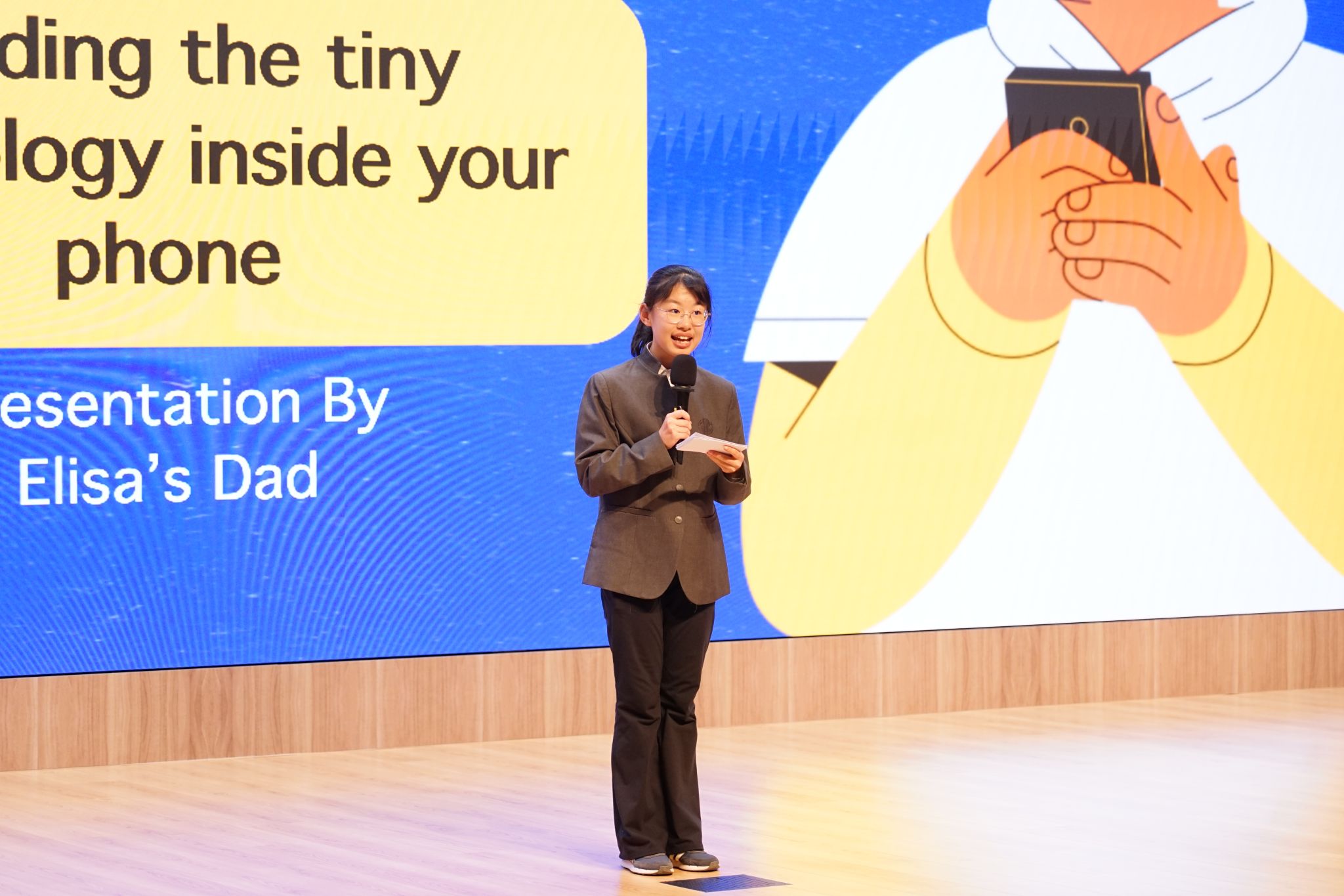 半导体工程师家长代表以“搭乐高积木”为比喻,为同学们揭开了半导体世界的神秘面纱。他介绍自己的工作就像在纳米尺度上搭建积木——一层一层,精密叠加,只不过这些“积木”比头发丝还要细上万倍。为了让同学们理解复杂的制造工艺,他将光刻、蚀刻、化学气相沉积等专业流程,比作先画图案、再雕刻、最后层层叠加的过程,生动形象又通俗易懂。他告诉同学们,这些听起来高深的专业术语,背后离不开数学、物理和化学等学科知识的支撑。只要保持一颗好奇的心,未来也有机会投身于这个不断突破极限的领域。