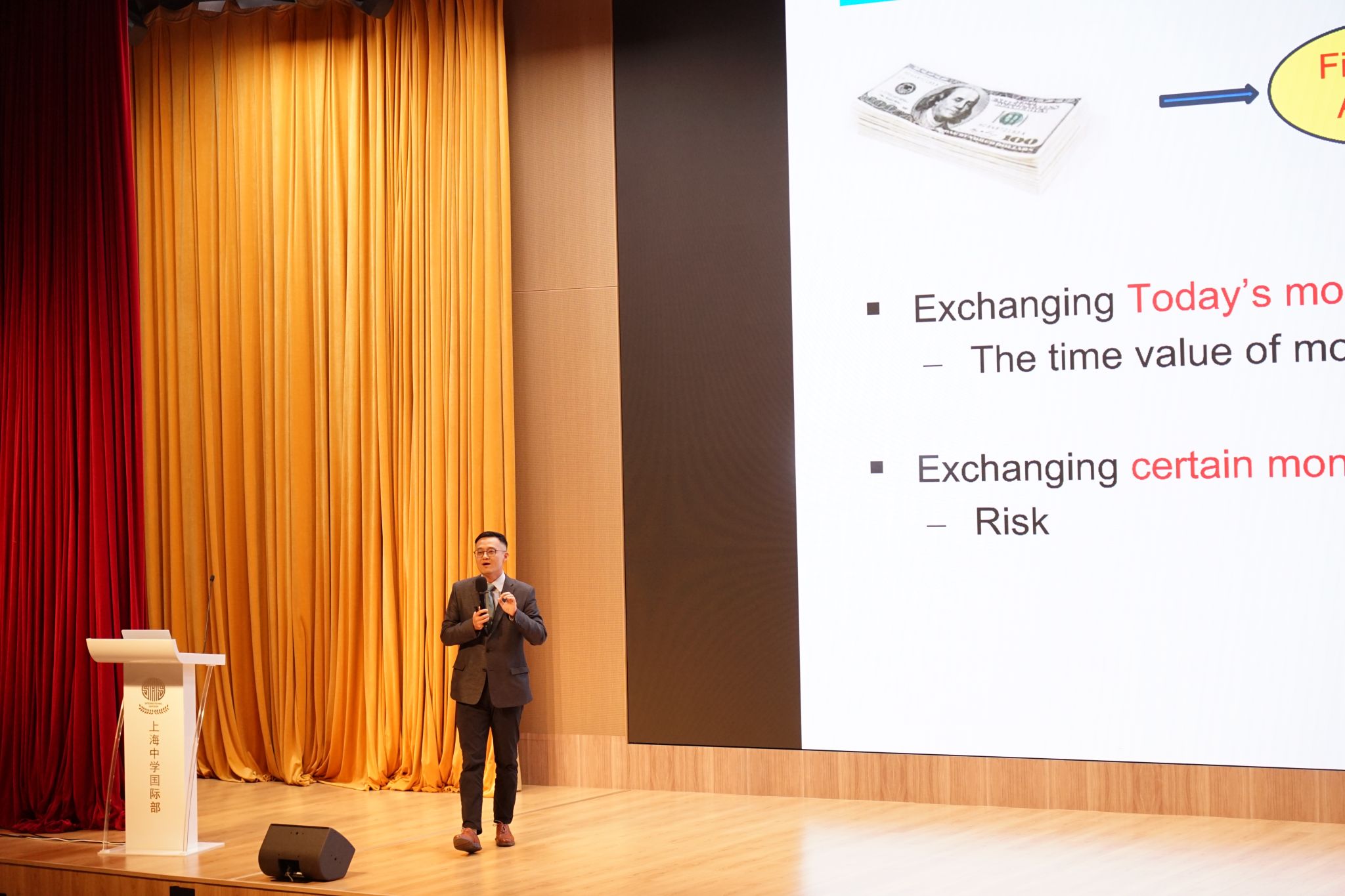 金融教授家长代表首先介绍了自己的日常工作,也分享了成为一名大学教授所需经历的成长路径。他准备了很多与大家生活紧密相关且极具启发性的小问题:“猜猜2025年上海月平均工资是多少?”“省下6000元和赚到6000元,哪个更容易”“每天省下一杯30元的咖啡,以8%的年化收益投资30年,能积累多少钱?”…… 这些问题一下子点燃了现场气氛,也让同学们在思考与讨论中,对收入、消费、投资和复利等概念有了更加直观的认识。原来,金融并不只是数字和公式,它也关乎选择、判断与长期思维。