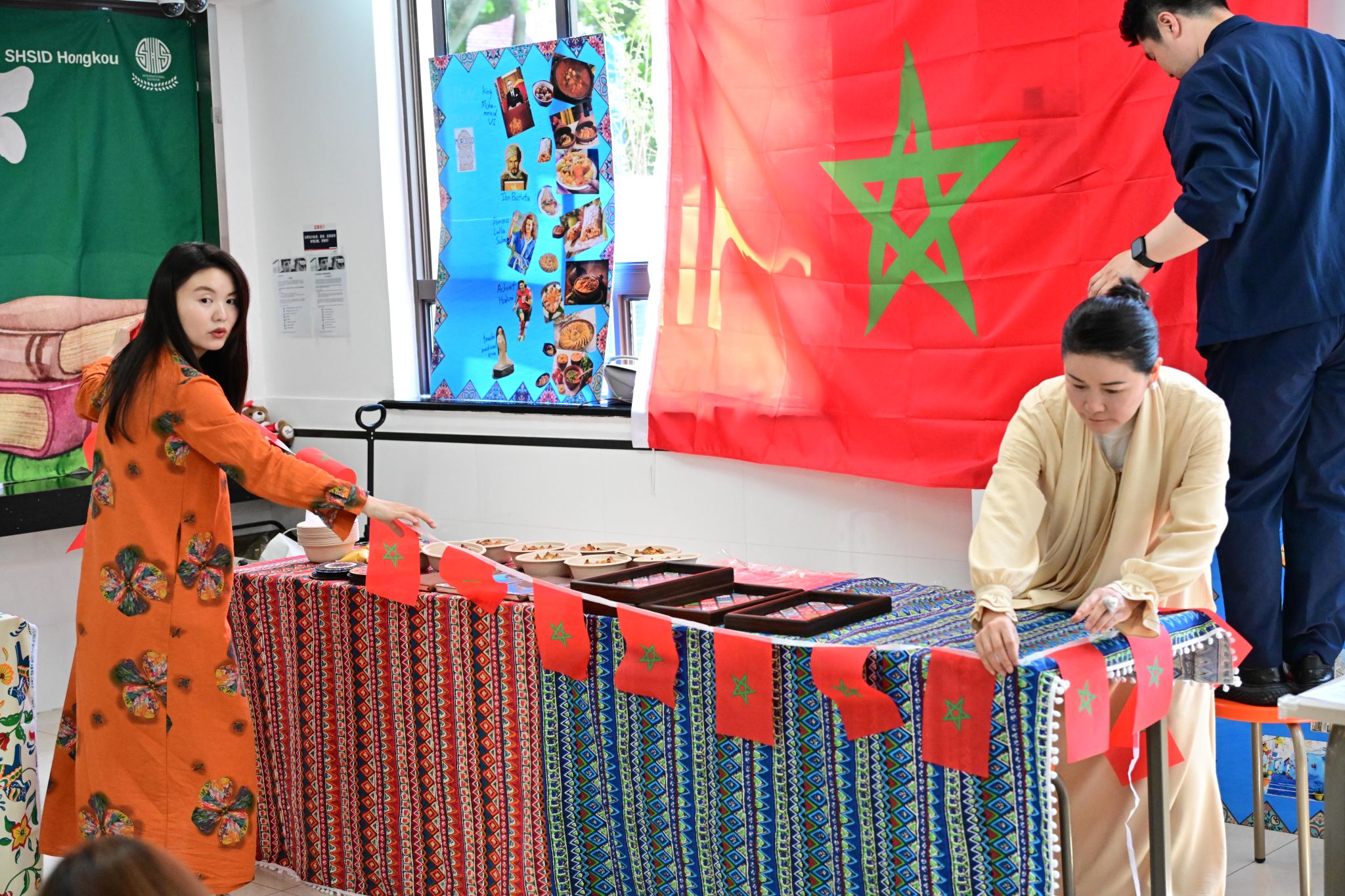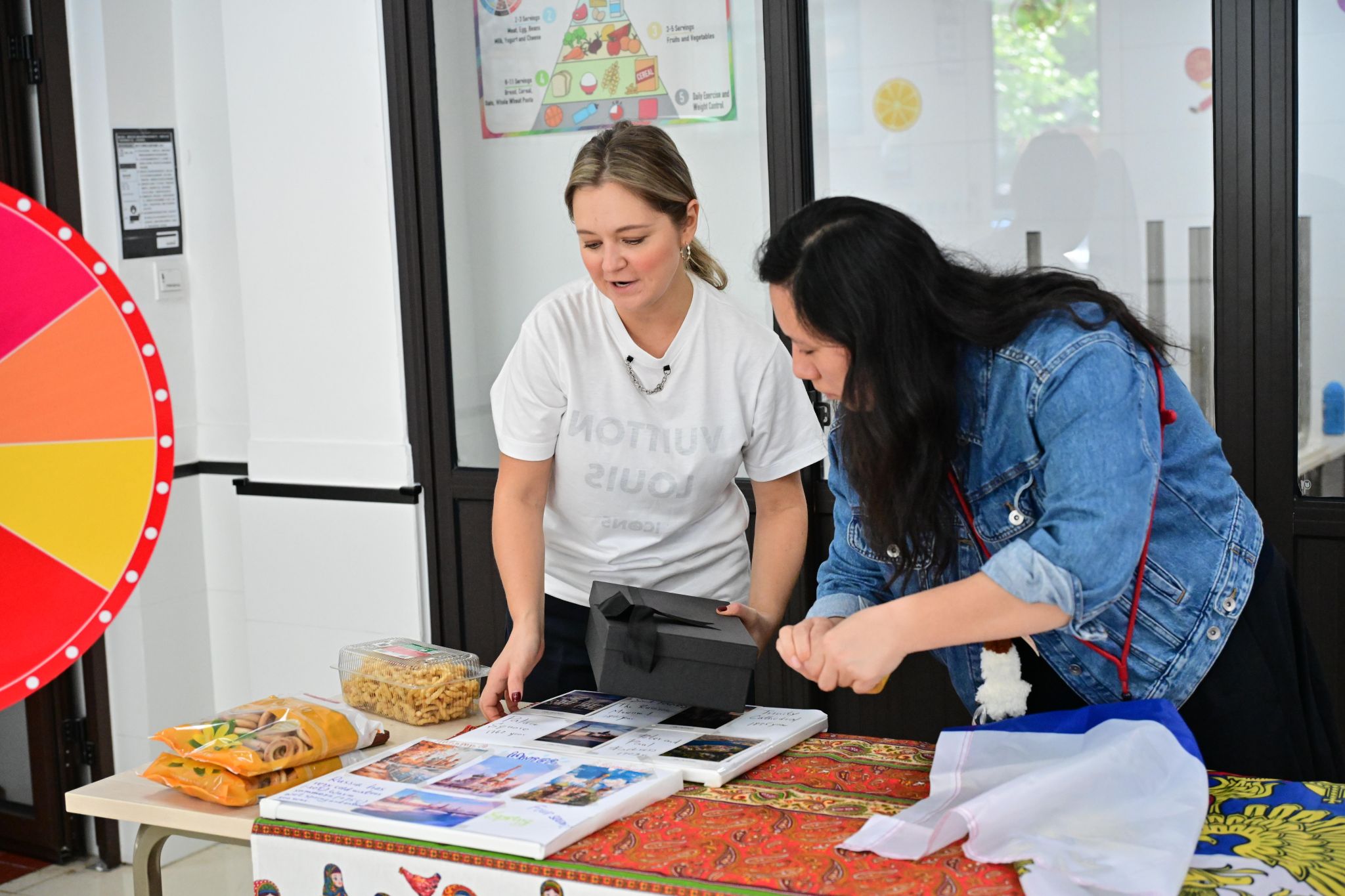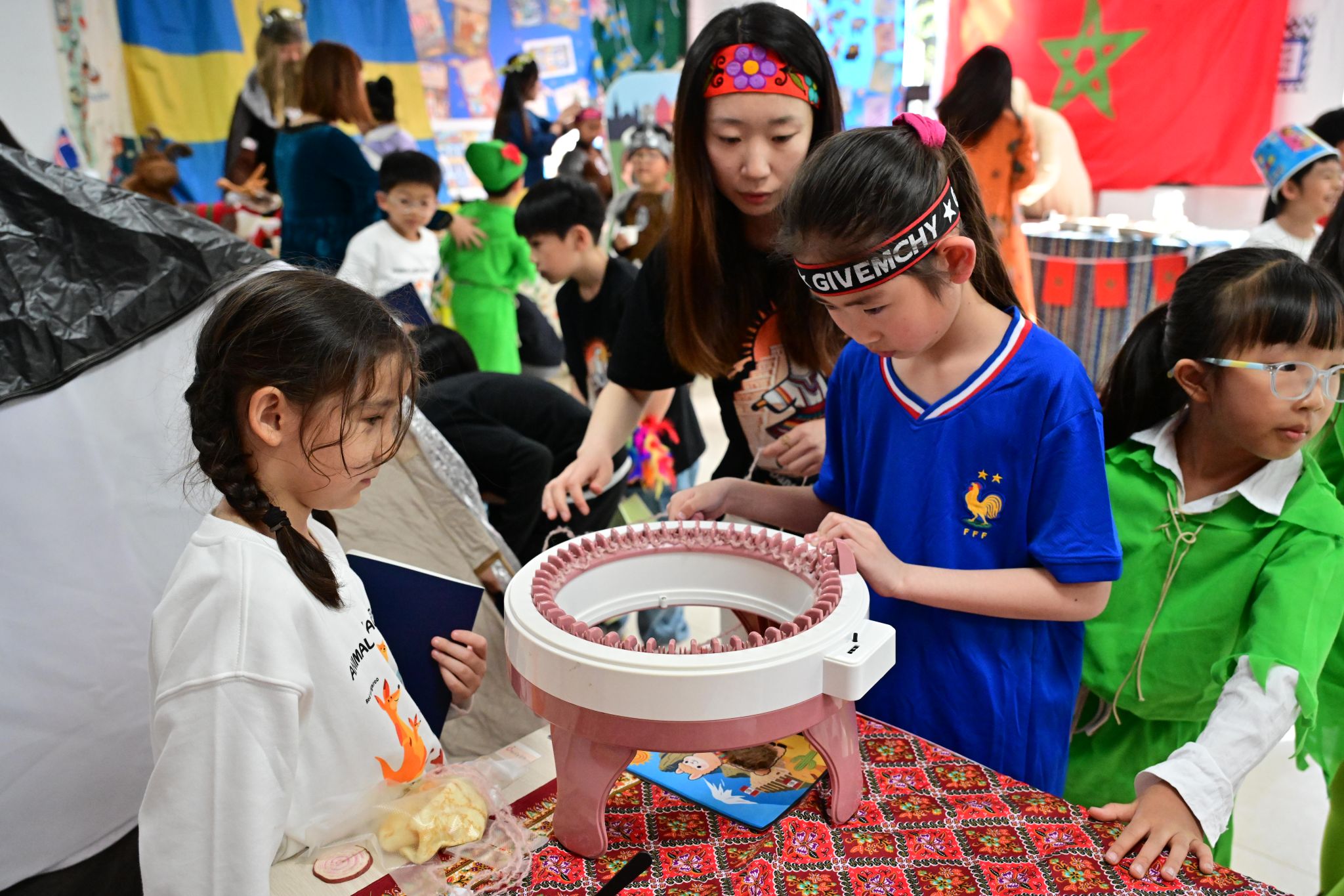 每一处展位,都是一扇窥见世界风情的独特窗口。场内挂满各国旗帜,陈列着传统手工艺品与学生原创的展示作品。丰富的互动体验环节,也让大家得以近距离深入感受多元文化的魅力。大家相互交流,全程满怀好奇与热忱,沉浸在探索世界的乐趣之中。
