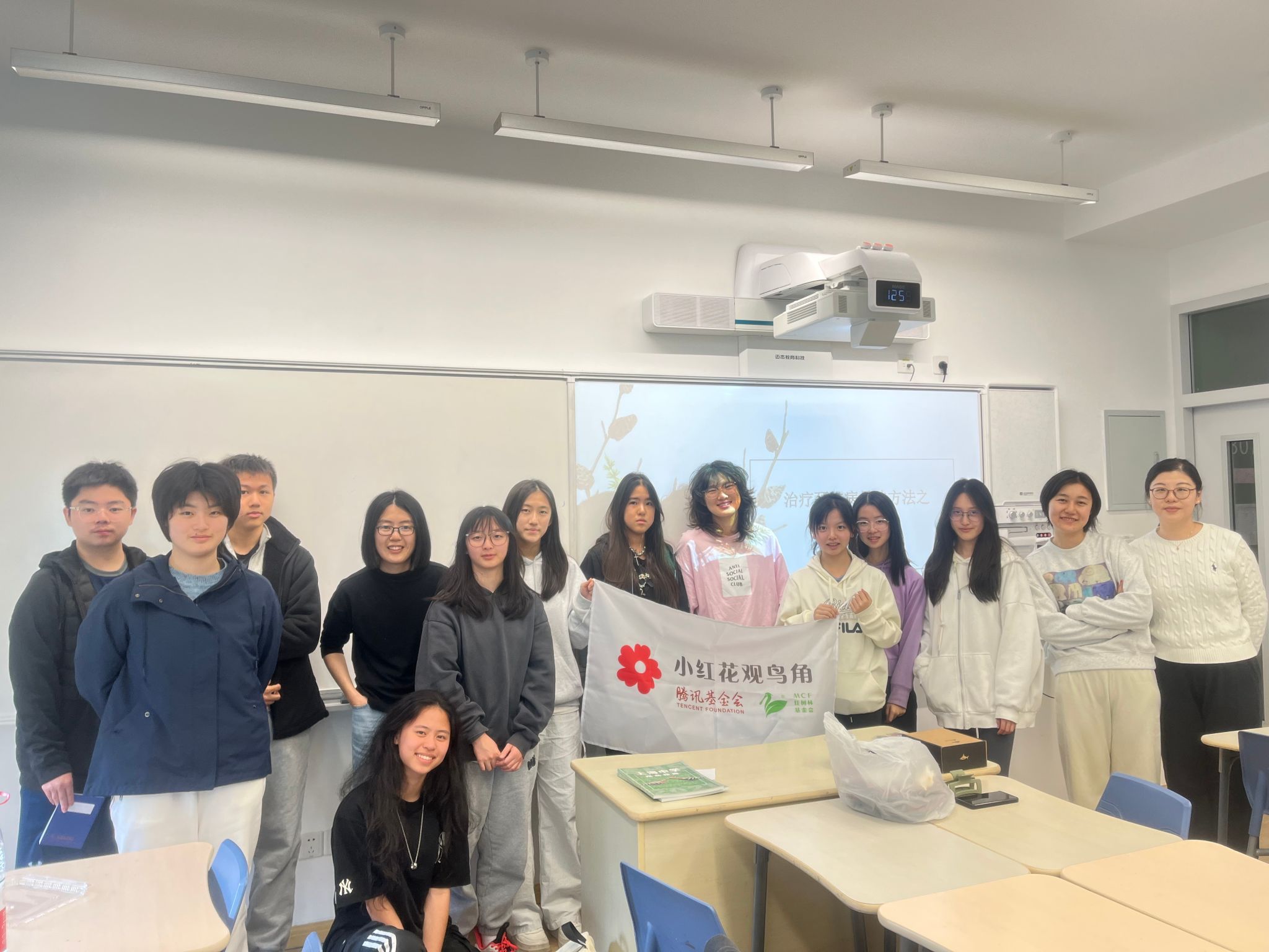 上中观鸟社致力于记录校园及上海地区的鸟类多样性。目前社团已在校园内记录到102种鸟类,其中包括堪察加柳莺、斑姬啄木鸟、栗鹀等数种沪内罕见鸟种。社团定期在eBird(康奈尔大学鸟类学实验室所创办的数据库)更新校园鸟类观测记录,为鸟类分布与迁徙研究提供数据支持。通过微信公众号与印刷刊物SHS Birding Guide,上中观鸟社持续分享观测成果与鸟类摄影作品,向公众展现校园丰富的生物多样性。自去年起,社团与深圳红树林基金会合作,在中兴楼三楼创设"小红花观鸟角",推动鸟类保护意识普及。此外,上中观鸟社每月还组织观鸟系列活动,从专题讲座到户外导览,吸引更多同学欣赏校园生物多样性,共同守护自然生态环境。